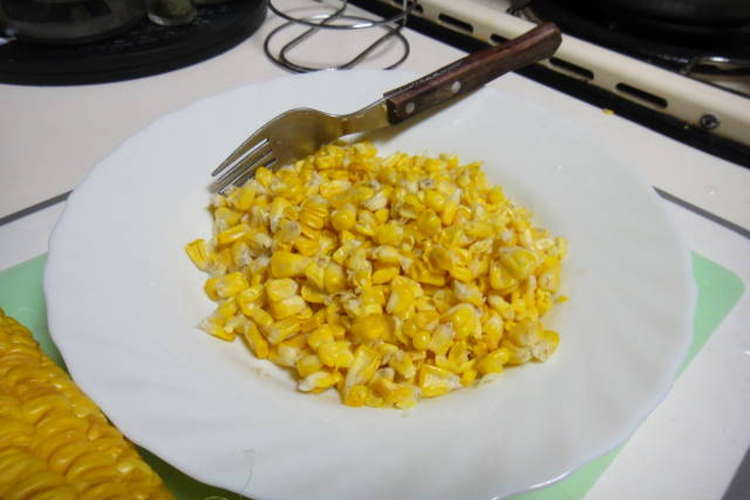 · 166ハートフルキッチン麗さんの「とうもろこしの醤油炒め☆焼きとうもろこし(レシピid ) コツ・ポイント バースプーンの中心に、ふきんを巻いて使うと手を痛めないで取りやすいです。 · 作り方 1 とうもろこしの皮を剥き、ひげを取ります。 とうもろこしを水で洗い、水が付いたままの状態で塩糀を薄く全体に塗ります。 ラップで包みます。 レンジで600w約4~5分加熱します。 2 加熱直後は熱いので、そのまま5分程度おくと、中までじっくり蒸されます。 レンジから取り出し、お皿に置いて、ラップを取り外します。 粒を取らず、このまま生のとうもろこしの粒を、きれいに取る方法はありますか?。味の素パークは味の素kkがおくるレシピ サイトです。簡単に作れる人気レシピなど、味の素が厳選した失敗しないレシピを 件掲載!毎日の夕飯・お弁当のおかずなどおすすめの料理 が満載!